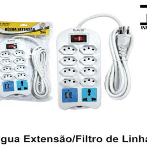 RÉGUA EXTENSORA 8TOMATAS+2USB+1TRIÂNGULO 2METRO