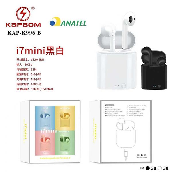 FONE BLUETOOTH I7MINI PRETO BRANCO