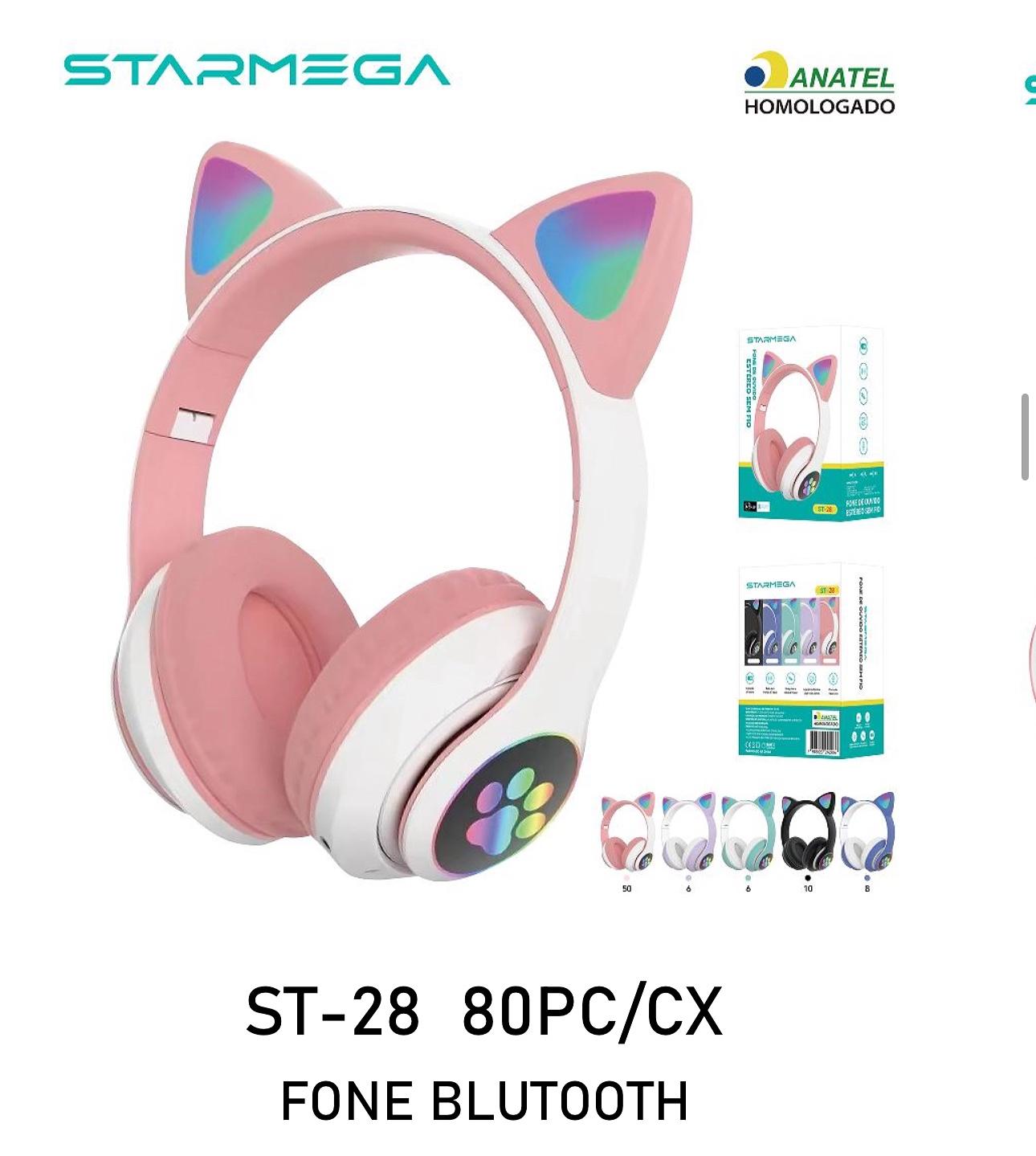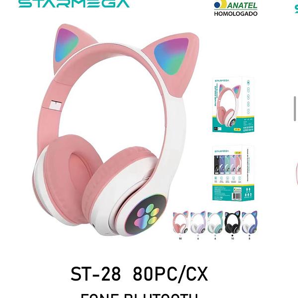 FONE COM ORELHA DE GATO BLUETOOTH LED