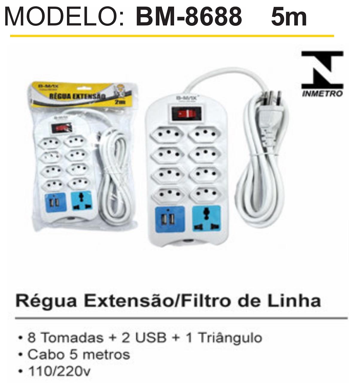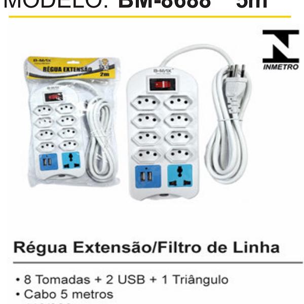 RÉGUA EXTENSORA 8TOMATAS+2USB+1TRIÂNGULO 5METRO