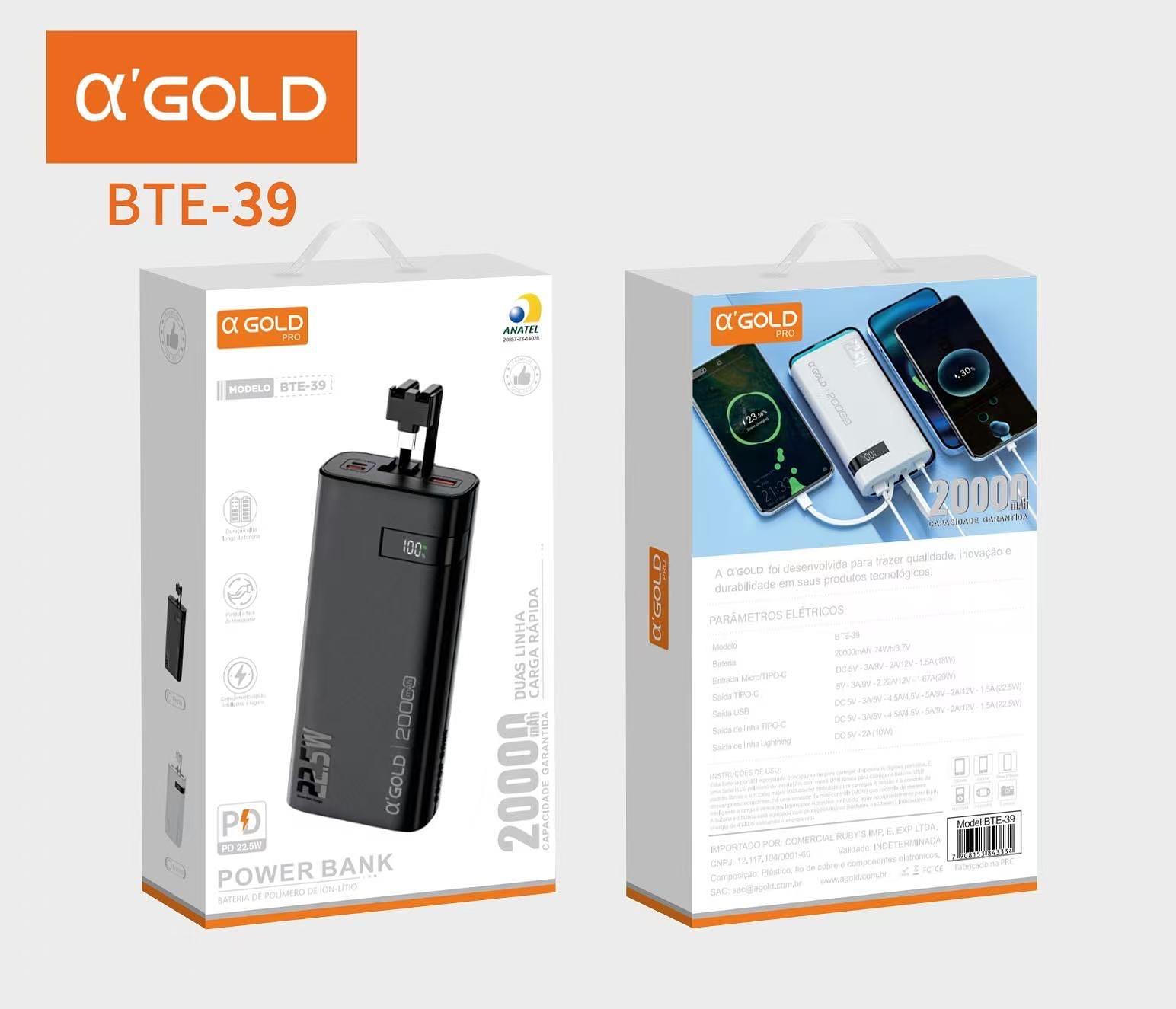 POWER BANK TUBO 20000MAH AGOLD